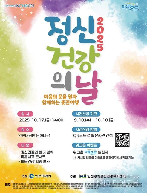 시민행정신문 기자 | 인천광역시는 10월 17일 인천대공원 문화마당에서 ‘마음의 문을 열자, 함께하는 충전 여행’이란 주제로‘2025년 정신건강의 날 기념행사’를 개최한다.