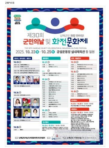 시민행정신문 강갑수 기자 | 남해군민의날추진위원회는 오는 10월 23일부터 25일까지 3일간 남해공설운동장과 실내체육관 일원에서 ‘제30회 군민의 날 및 화전문화제’를 개최한다.