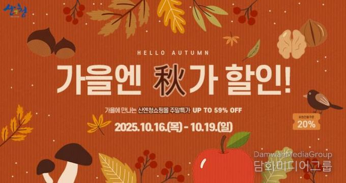 시민행정신문 이세훈 기자 | 산청군 직영 쇼핑몰 산엔청쇼핑몰은 16일부터 19일까지 ‘가을엔 秋가할인!’ 주말 특가 이벤트를 추진한다고 밝혔다.
