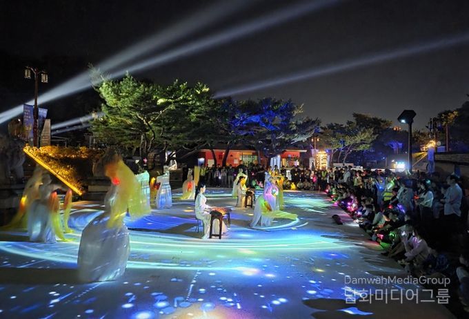 ‘대가야, 열두개의 별’이라는 주제로 대가야 악성 우륵 선생이 작곡한 가야금 12곡과 지산동 고분군에 담긴 대가야의 영광을 미디어아트로 재해석하여 유산의 가치와 신비로운 분위기를 담아내었다. 각각의 콘텐츠는 가야금 선율과 함께 어우러지며, 특히 무희들의 전통무용과 가야금 연주가 미디어아트의 하이라이트를 장식했다.