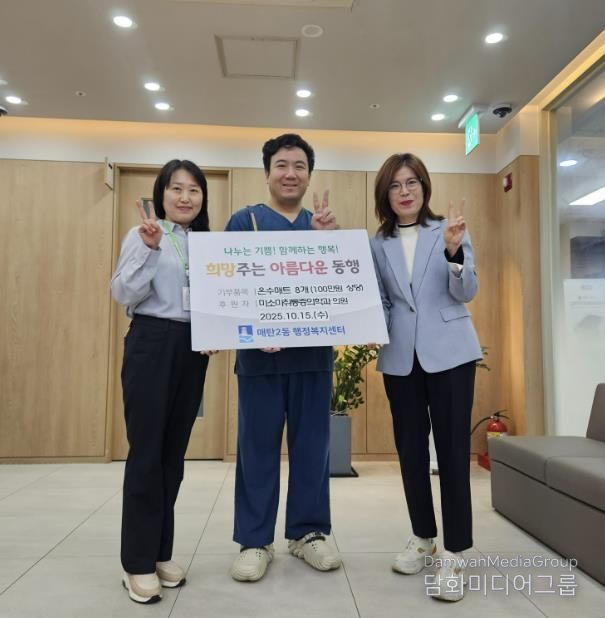 시민행정신문 강갑수 기자 | 지난 15일, 수원시 영통구 소재 미소마취통증의학과의원은 관내 저소득 어르신들이 따뜻한 겨울을 보낼 수 있도록 매탄2동 행정복지센터에 100만원 상당의 온수매트 8세트를 기부했다.