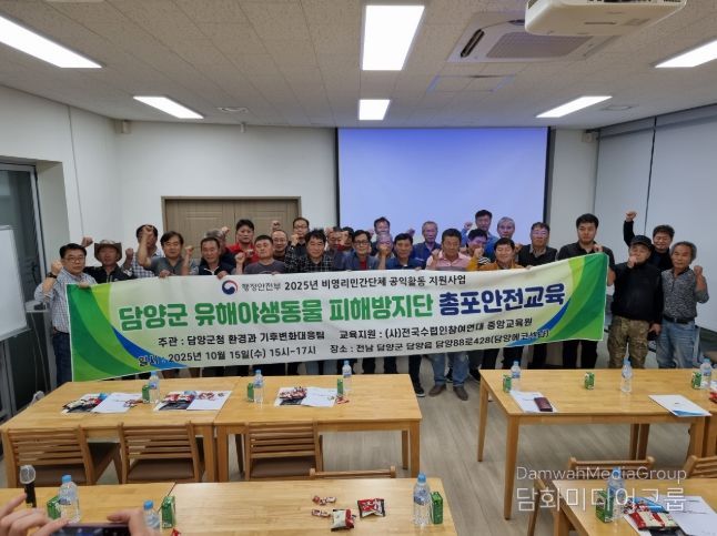 시민행정신문 강갑수 기자 | 담양군은 지난 15일 에코교육관에서 유해야생동물 기동포획단을 대상으로 포획활동 시 준수사항과 총기사고 예방 등을 위한 안전교육을 진행했다.