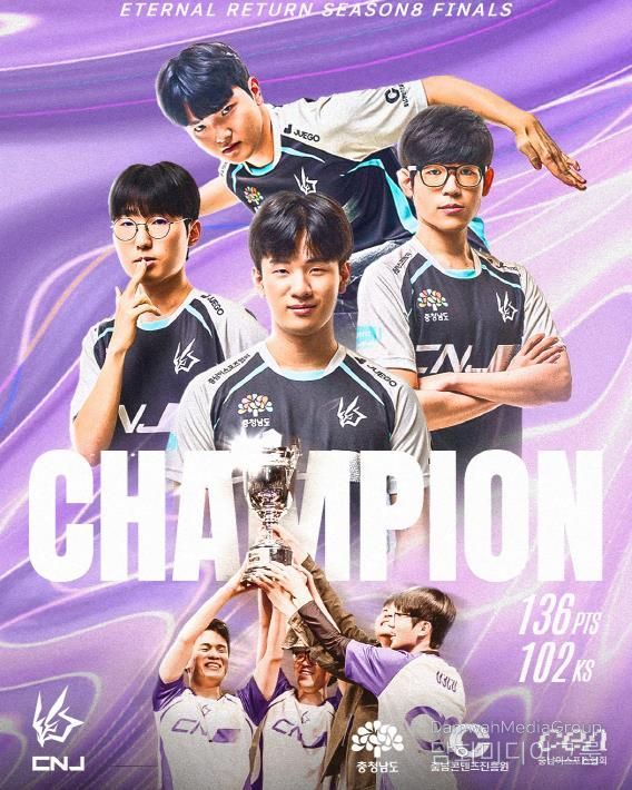 시민행정신문 장규호 기자 | (재)충남콘텐츠진흥원은 충청남도를 대표하는 이스포츠 게임단 ‘CNJ Esports가 2025년 10월 12일 대전 드림 아레나에서 열린 이터널 리턴 마스터즈 시즌8 파이널에서 우승을 차지했다고 밝혔다.