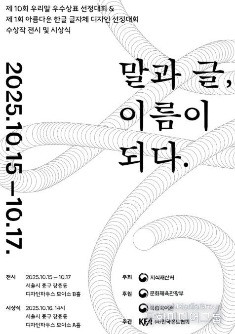 지식재산처는 10월 16일 14시 디자인하우스(서울시 중구)에서 ‘제10회 우리말 우수상표 선정대회’와 ‘제1회 아름다운 한글 글자체 디자인 선정대회’를 개최하고 우수한 평가를 받은 상표·디자인을 시상한다고 밝혔다.