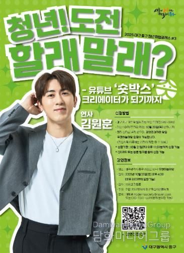시민행정신문 강갑수 기자 | 대구 중구는 10월 25일 오후 4시, ‘2025년 청년 팝업클래스’의 마지막 클래스를 우현하늘마당(서성로 62-1)에서 개최한다.