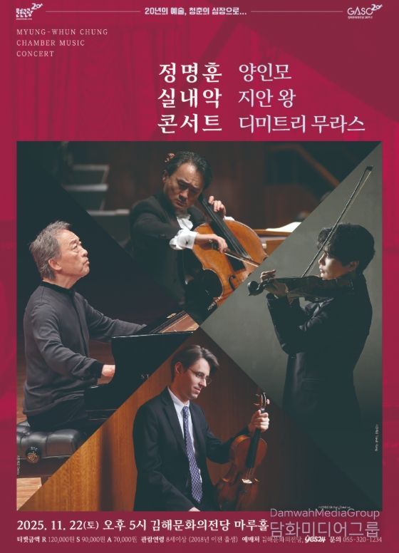 시민행정신문 강갑수 기자 | (재)김해문화관광재단(대표이사 최석철) 김해문화의전당은 거장 피아니스트이자 지휘자인 마에스트로 정명훈이 세계 최정상 연주자들과 함께하는 특별한 실내악 무대를 11월 22일(토) 오후 5시 김해문화의전당 마루홀에서 선보인다고 전했다.