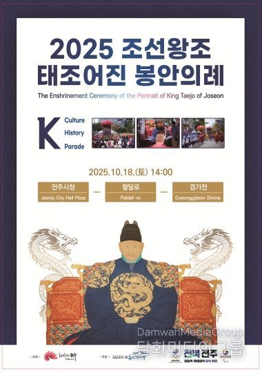 시민행정신문 강갑수 기자 | ‘2025 조선왕조 태조어진 봉안의례 재현행사’는 다가오는 10월 18일 토요일 오후 2시 전주시청부터 팔달로를 거쳐 경기전까지, 봉안의례 재현행사를 통해 시민들에게 조선왕조의 본향인 전주의 문화적 가치를 알리며 역사의 향기로 거리를 물들일 예정이다.