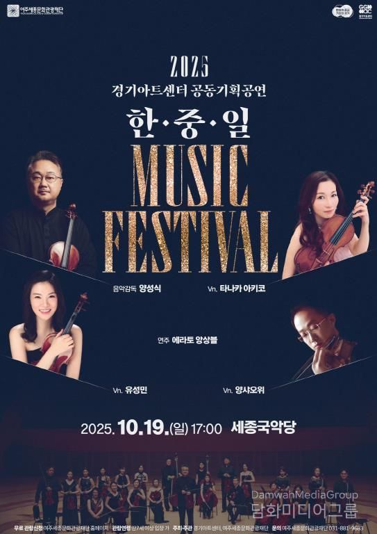 시민행정신문 기자 | 여주세종문화관광재단이 오는 10월 19일, 경기아트센터와 공동기획으로 ‘한·중·일 뮤직 페스티벌’을 세종국악당에서 선보인다.