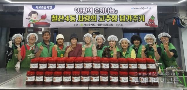한편, 새마을지도자 철산4동협의회와 부녀회는 매년 ▲밑반찬 나눔 ▲해충방역 소독 ▲고추장 나눔 ▲김장 나눔 등 다양한 봉사활동으로 이웃사랑을 실천하고 있다.