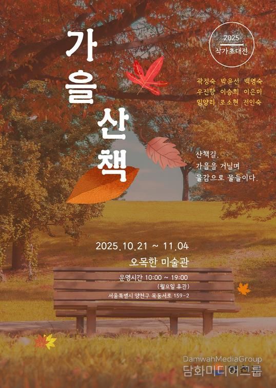 시민행정신문 이존영 기자 | 양천구는 10월 21일부터 11월 4일까지 오목공원 내 ‘오목한미술관’에서 가을 정취를 담은 기획전시 '가을 산책'을 개최한다고 밝혔다.