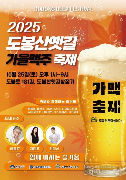 시민행정신문 이존영 기자 | 서울 도봉구가 오는 10월 25일 도봉산옛길 상점가(도봉로 181길 일대)에서 '2025 도봉산옛길 가을맥주축제‘를 개최한다.