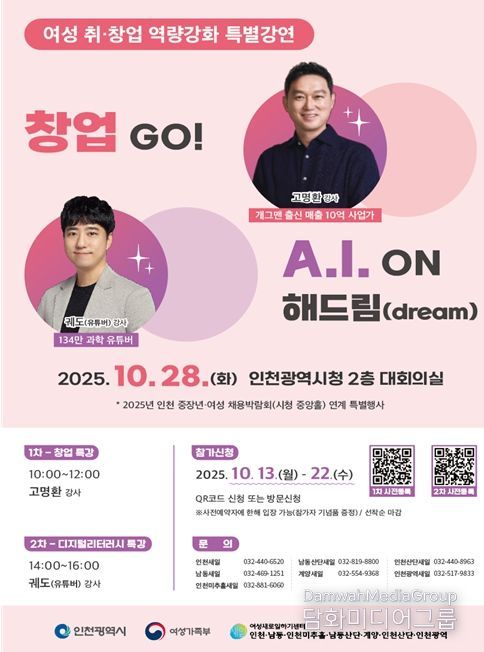 시민행정신문 이세훈 기자 | 인천광역시가 오는 10월 28일 개최되는 ‘2025년 인천 중장년·여성 채용박람회’와 연계해 특별행사로 여성의 취·창업 역량 강화를 위한 특별강연을 시청 본관 2층 대회의실에서 개최한다고 밝혔다.