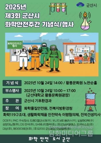 시민행정신문 강갑수 기자 | ‘화학사고 없는 안전도시 군산’ 실현을 위해 오는 10월 20일부터 24일까지‘제3회 군산시 화학안전주간’행사가 열린다.