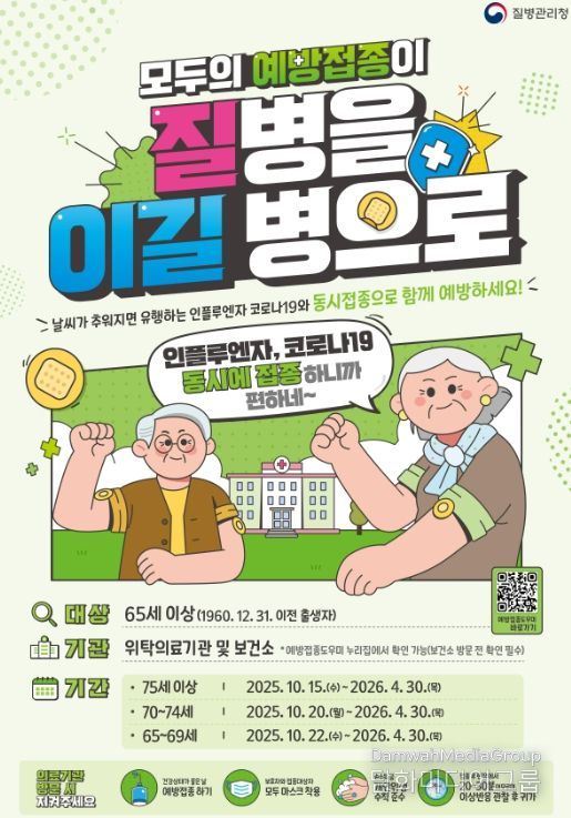 17일 시에 따르면 65세 이상 어르신부터 인플루엔자 및 코로나19 백신 접종이 동시에 가능하며, 연령별로 순차적으로 진행된다.