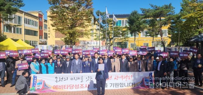 이날 행사는 홍천군민의 100년 숙원사업인 홍천철도 유치 실현을 염원하기 위해 마련됐으며, 재향군인회와 보훈단체 회원 등 약 120여 명이 참여했다. 참가자들은 “용문~홍천 광역철도 예타 통과를 기원합니다”라는 문구의 현수막과 손팻말을 들고 시내를 행진하며, 조속한 예타 통과와 사업의 조기 착공을 촉구했다.