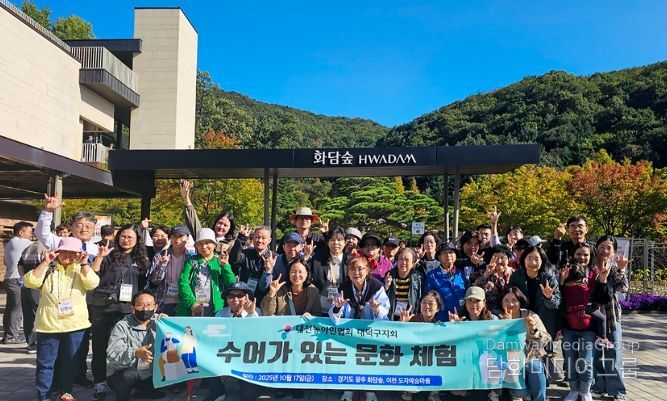 이번 행사에는 대덕구 농아인 회원과 자원봉사자 등 35명이 참여해 경기 광주의 화담숲과 이천 도자기마을 찾아 자연을 느끼고 도예 활동을 체험하며 수어로 소통하는 시간을 가졌다.