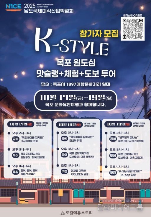시민행정신문 이세훈 기자 | 남도국제미식산업박람회 사무국은 17일부터 19일까지 목포 원도심 일원에서 ‘원도심 K-Style 박람회’를 개최한다.