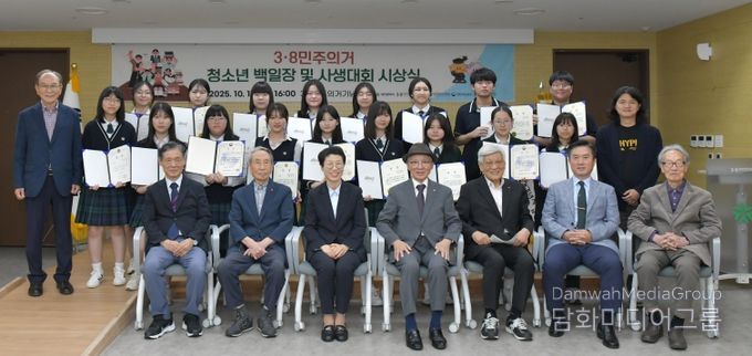 시민행정신문 강갑수 기자 | 대전광역시 3·8민주의거기념관이 주최하고, 대전광역시교육청·대전지방보훈청·사)3·8민주의거기념사업회가 후원한‘3·8민주의거 청소년 백일장 및 사생대회’시상식이 10월 17일 3·8민주의거기념관 강당에서 개최됐다.