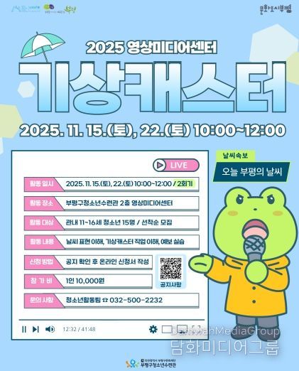 시민행정신문 강갑수 기자 | 부평구 청소년수련관이 ‘기상캐스터 직업 특강’에 참여할 청소년을 모집한다.