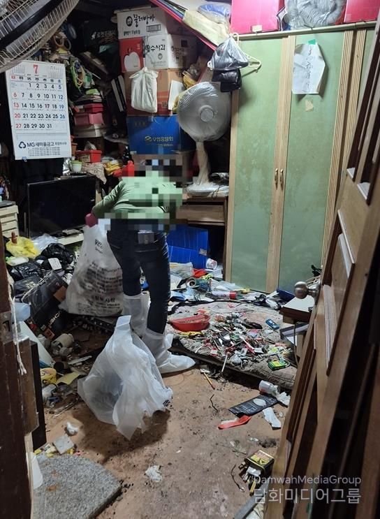 대상자는 폐결핵 및 폐렴을 앓고 있는 고위험 건강 취약계층으로 장기간 병원치료를 받은 후 퇴원했다. 주거지에 출입이 어려울 정도로 쓰레기가 쌓여 있고, 악취와 해충으로 위생 및 건강상의 문제가 매우 심각한 상황이었다.