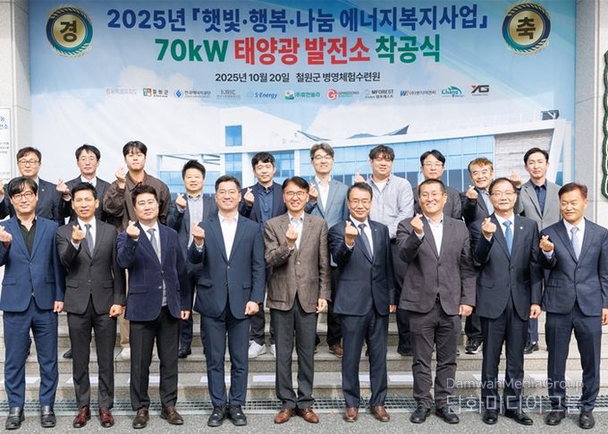 시민행정신문 김학영 기자 | 10월 20일 오전 11시, 철원군 갈말읍에 위치한 철원군병영체험수련원에서 '햇빛·행복·나눔 에너지복지사업 70kW 태양광 발전소 착공식'이 열렸다. 이 행사에는 강원특별자치도 산업국장, 철원군수, 한국에너지공단 강원지역본부장, 한국기후변화연구원장, 그리고 강동에너지대표이사 등 5개 신재생에너지 관련 민간기업 대표가 참석했다.