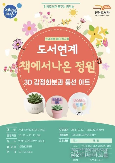 시민행정신문 강갑수 기자 | 구리시 인창도서관의 메이커스페이스‘꿈꾸는 공작소’가 오는 10월 21일부터 11월 17일까지 총 4회에 걸쳐 특수학급 학생들을 대상으로 '책에서 나온 정원' 메이커 프로그램을 운영한다.