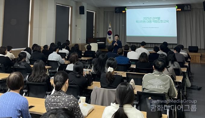 이중 특이민원 대응 교육은 관련 분야 전문강사를 초빙하여 실제 발생 사례 중심의 실무형 강의와 대응 전략을 다룬다.