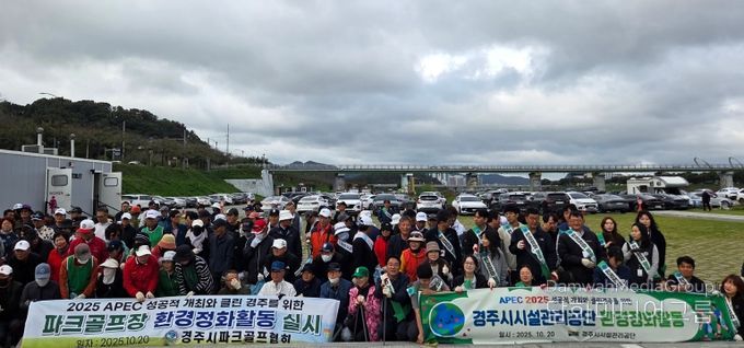 시민행정신문 김학영 기자 | 경주시시설관리공단(이사장 김진태)은 10월 20일, 경주 제1·제2 파크골프장 일원에서 '2025 APEC 정상회의 경주'개최의 성공을 기원하며 유관기관 합동 환경정화 활동을 진행했다.