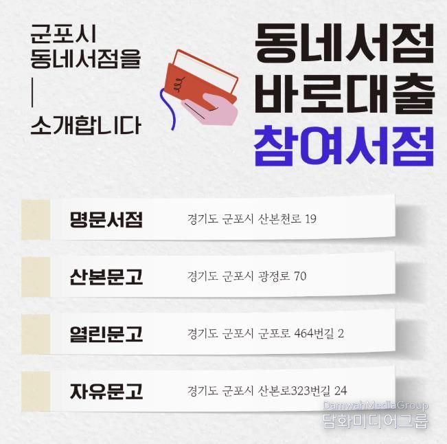 하은호 군포시장은 “동네서점 바로대출 서비스는 지역서점과 도서관이 함께 성장하는 지속가능한 독서문화 모델로 자리 잡고 있다. 많은 시민들의 관심과 이용을 바란다”고 밝혔다.