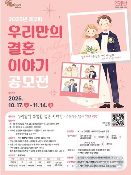 보다 자세한 사항은 시 누리집(열린시정' 고시공고' 제2회 우리만의 결혼 이야기 공모전) 공고문을 참고하면 된다.