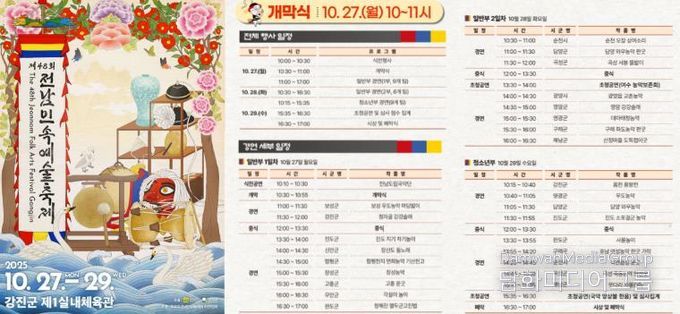 마지막 날인 29일에는 청소년부 경연이 진행되며, 강진 옴천초등학교를 비롯한 9개 학교·단체가 참여해 어린이와 청소년이 전통문화를 이어가는 무대를 선보인다.
