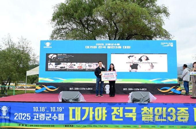 시민행정신문 강갑수 기자 | 고령군은 지난 19일 다산문화공원 본대회의장에서 열린 ‘2025 고령군수배 대가야 전국 철인3종 대회’ 개막식에서 로페즈 전가은 대표가 고향사랑기부금 200만원을 기탁했다고 전했다.