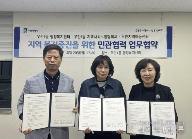 시민행정신문 강갑수 기자 | 수원시 팔달구 우만1동 지역사회보장협의체, 행정복지센터는 지난 20일, 우만지역아동센터와 위기 아동의 조기 발견 및 지원 강화를 위한 업무협약을 체결했다.
