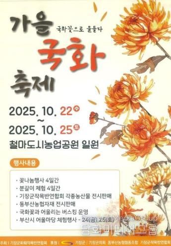 정종복 기장군수는 ‘올해 행사가 철마도시농업공원에서 새롭게 열리는 만큼, 많은 관람객들이 찾아와 따뜻한 가을 햇살과 은은한 국화 향기 속에서 가을 감성을 느끼며 소중한 추억을 남기길 바란다”라고 말했다.