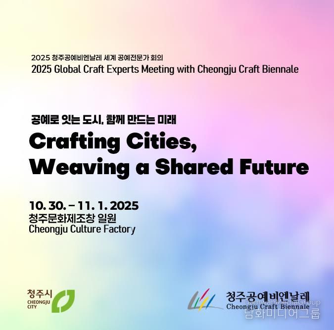 각국 도시 행정의 수장부터 문화전문가까지 한자리에 모여 글로벌 공예도시들의 연대와 협력, 동반 성장을 논의하게 될 이번 세계 공예전문가 회의는 10월 30일부터 11월 1일까지 2025 청주공예비엔날레가 진행 중인 대한민국 청주 문화제조창 일원에서 개최된다.