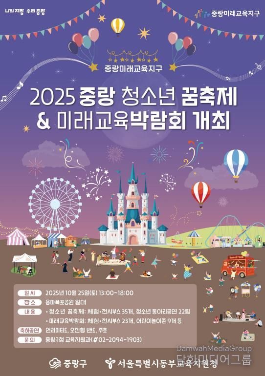 시민행정신문 이존영 기자 | 중랑구는 오는 10월 25일 오후 1시부터 6시까지 용마폭포공원에서 '2025 제7회 중랑 청소년 꿈축제'와 '미래교육박람회'를 합동 개최한다. 이번 행사는 지역 내 학교, 청소년 동아리, 청소년 유관 기관 등 1,500여 명이 참여하는 가운데 청소년의 자치 역량을 강화하고 중랑미래교육지구의 성과를 공유하는 기회로 마련됐다.