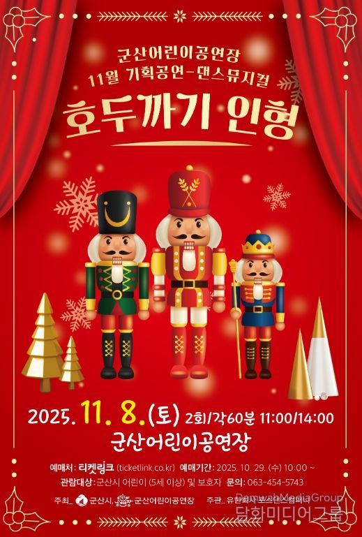 댄스뮤지컬 ‘호두까기 인형’은 11월 8일 오전 11시와 오후 2시, 총 2회 공연으로 진행되며, 사전 예약은 10월 29일 오전 10시부터 티켓링크를 통해 가능하다.