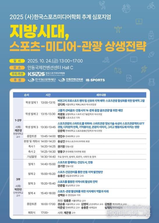 시민행정신문 기자 | 한국스포츠미디어학회는 10월 24일 오후 1시부터 안동국제컨벤션센터에서 ‘2025 추계 심포지엄’을 개최한다.