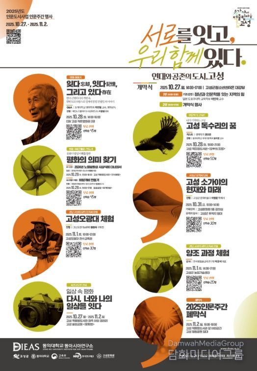 시민행정신문 강갑수 기자 | 고성군은 동의대학교와 협력하여 수행하는 사업인 ‘2025년도 인문도시사업 인문주간 행사’를 10월 27일 청소년센터 온에서 개막식을 시작으로 11월 2일까지 7일간 개최한다.