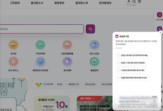 시민행정신문 강갑수 기자 | 서울 동대문구는 지난 20일부터 생성형 인공지능(AI)을 기반으로 한 누리집 챗봇 서비스를 본격 운영하고 있다고 밝혔다.