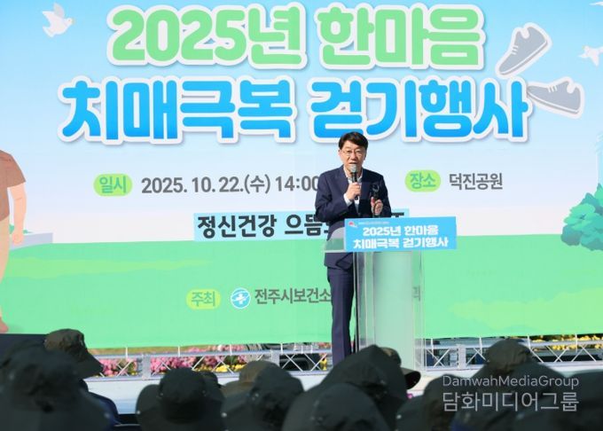 전주시보건소는 22일 덕진공원 일원에서 우범기 전주시장과 최주만 전주시의회 부의장, 치매환자와 가족 등 전주시민 700여 명이 참석한 가운데 ‘2025년 한마음 치매극복 걷기’ 행사를 개최했다.