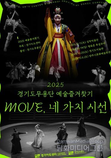 10월 25일 오전 11시와 오후 2시 30분에는 경기도미술관 1층 로비라운지에서 경기도무용단 협력사업으로 진행되는 예술즐겨찾기 〈움직임으로 그리는 춤 전시, 세종〉을 만나볼 수 있다. 이번 공연은 경기도무용단이 2024년 제작한 창작무용극 〈세종〉을 미술관 공간에 맞춰 재구성한 전시형 공연으로, 세종대왕의 내면과 철학, 그리고 백성을 향한 깊은 사랑을 무용의 언어로 시각화했다.