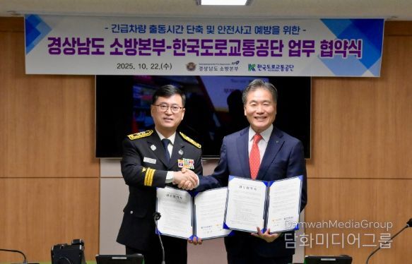 시민행정신문 강갑수 기자 | 경상남도 소방본부(본부장 이동원)는 10월 22일 한국도로교통공단(교통안전본부장 서범규)과 ‘긴급차량 출동시간 단축 및 안전사고 예방을 위한 업무협약’을 체결하고, 첨단 교통안전 협력체계 구축에 나섰다.