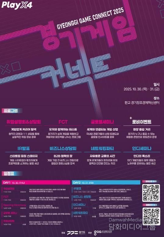 ‘경기게임커넥트 2025’는 매년 5월 열리는 수도권 최대 게임쇼 ‘플레이엑스포’의 후속 프로그램으로 지난해에 이어 올해 두 번째다. 참가 개발사 후속 지원 강화를 위한 비즈니즈 상담회 확대와 글로벌 진출 역량 강화를 위한 글로벌 세미나 신설이 작년과 차별화된 점이다