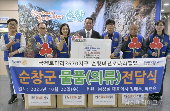 시민행정신문 강갑수 기자 | 국제로타리 3670지구 순창비전로타리클럽(회장 김광진)은 유·아동 및 성인 내의류 전문 생산업체인 ㈜성실로부터 총 2,010벌(시가 약 5,300만 원 상당)의 의류를 후원받아 순창군청에 기탁했다.
