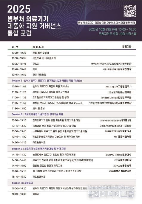 시민행정신문 이존영 기자 | 식품의약품안전처는 범부처 전주기 의료기기 연구개발사업단과 함께 범부처의료기기 제품화지원 거버넌스 성과를 공유하고 발전방향을 논의하기 위한 ‘2025 범부처 의료기기 제품화지원 거버넌스 통합포럼’을 10월 23일 프레지던트호텔(서울시 중구 소재)에서 개최한다.