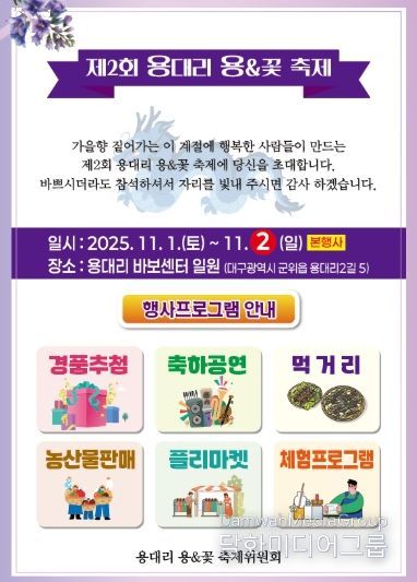 시민행정신문 강갑수 기자 | 용대리 마을회와 용대리 용&꽃 축제위원회는 오는 11월 1일부터 2일까지 이틀간, 용대리 마을회관 및 바보센터 일원에서 '제2회 용대리 용&꽃 축제'를 개최한다.