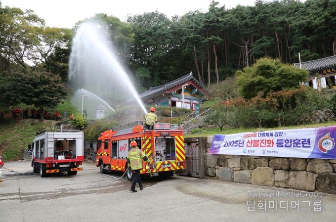 이어 실시된 산불진압 합동훈련은 홍성군 산림녹지과와 협력하여 진행됐으며, 산불 발생 시 초기 대응체계 구축과 유관기관 간 공조체계 확립을 목표로 했다. 훈련에서는 산불 발생 가정 하에 초동진화, 인명 대피 유도, 송수지원 및 진화작업 등 실제 상황을 가정한 실전형 훈련이 전개됐다.