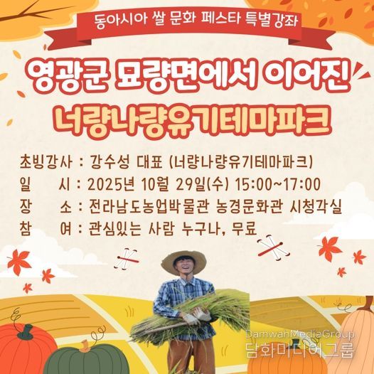 강좌는 누구나 무료로 참여할 수 있으며, 사전 신청 없이 선착순 입장이 다. 자세한 일정과 내용은 전남도농업박물관 누리집에서 확인할 수 있다.