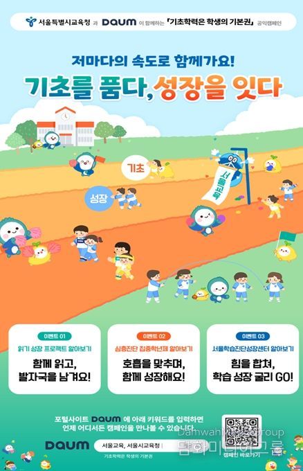시민행정신문 이존영 기자 | 서울특별시교육청은 학생들의 기초학력 보장을 위해‘서울형 기초학력 지원체계’를 널리 알리고자 오는 11월 27일까지 포털사이트 다음(DAUM)과 함께『기초학력은 학생의 기본권』공익 캠페인을 진행한다.